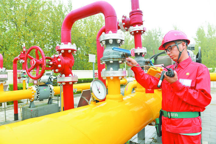 滨湖新区天然气门站的场站运行工正在进行日常巡检。 徐小玲 摄