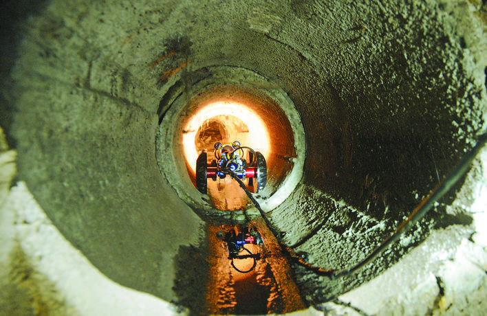 排水管道机器人在阜南路一处井下管道作业。 记者 张大岗 摄