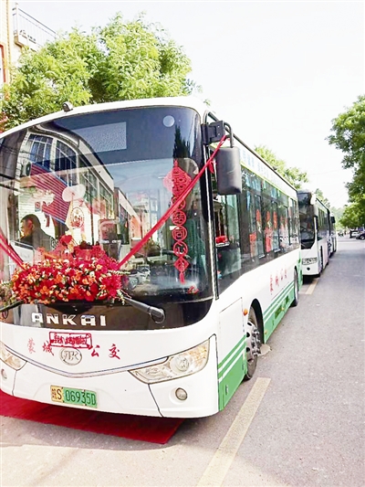 变身婚车的公交车。