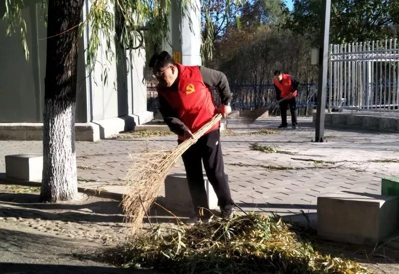 ����10��27�գ������������������ʱ�ڣ�������19���壨�ӣ��Ľ�ͷ��β������һȺ��Ϥ����Ӱ���������ź���ף�������ǣ��е�����ɨ�ѣ��е������������е���������Ͱ���Դ��ڵĿ�Ҷ�Ӳݡ����������ͽ�������������˳�����ɨ��