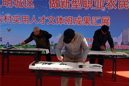 ������ũ��ʵ���˲�����ࡱ�������������������̹�ί����ί����ũ��У������ģ��Խ���4�¿����������ܵ��˸����������հ����ߵ����һ�ӭ��Ŀǰ��������ѧԱ60���ˣ�������ࡱ�������鷨���赸��̫���������ȿγ̣�ÿ����һ������������רҵ��ʦ���м����ڿΣ�ͨ��ϵͳ��ѧϰ��ѧԱ�ǵĵ��ۺ������õ��˼��������������Ļ㱨�ݳ�������ѧԱ��ѧϰ�ɹ���һ��չʾ��