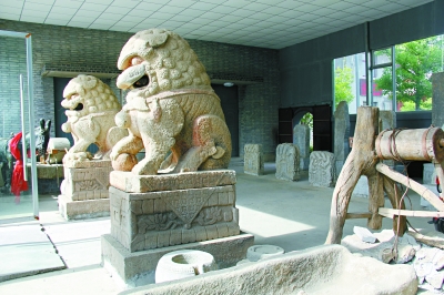 在渤海所村集中保管着500余岁的两尊石狮、饮马槽和石碑。图片来源:北京日报