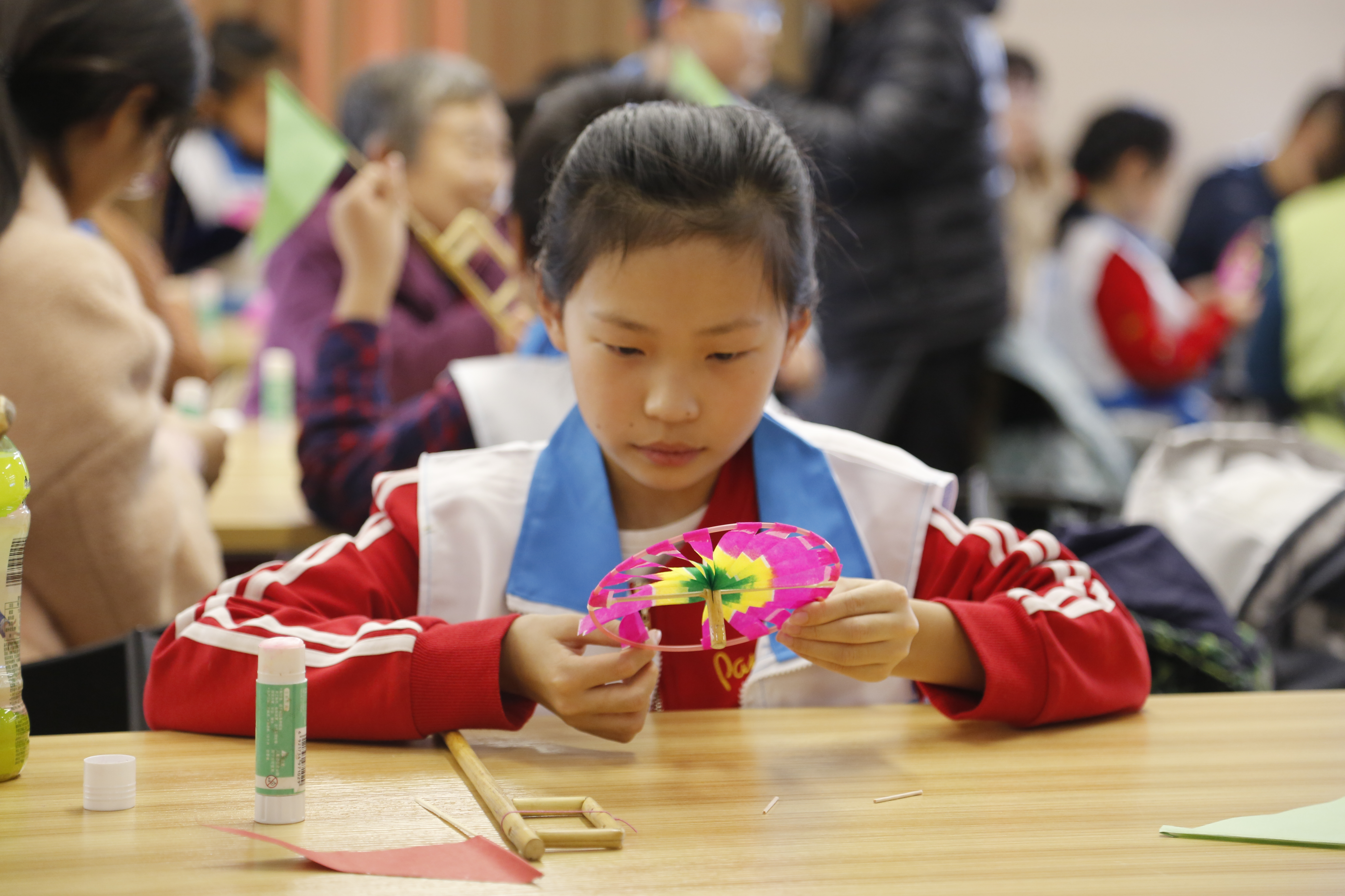“奶奶,以后人们再也不用买炮竹了,这个就很好玩啊!”粉黄绿三色的风轮、哒哒哒清脆的鸣响……宝贝常雅晴拿着做好的风车,一边迎风挥舞,一边对身旁的奶奶说道。