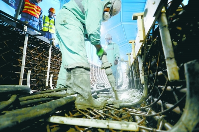 �����߽���ɫ���ֵ��ܱչ�����ܿ�������ʩ���е���������3�����������乤��ɵ�С�����ڽ���������ҵ�����ȵĿ����м����ŷɽ��Ļ������������Ļ����£�һ�μ�ʮ��������Ҫ���乤��һ���dzɵ���ɣ��������������20��Сʱ��ʩ�������У����������乤����Ҫ�г�ǿ��������������ͬʱ�Ի��������ȶȵİѿ�ҲҪ��ȷ��������