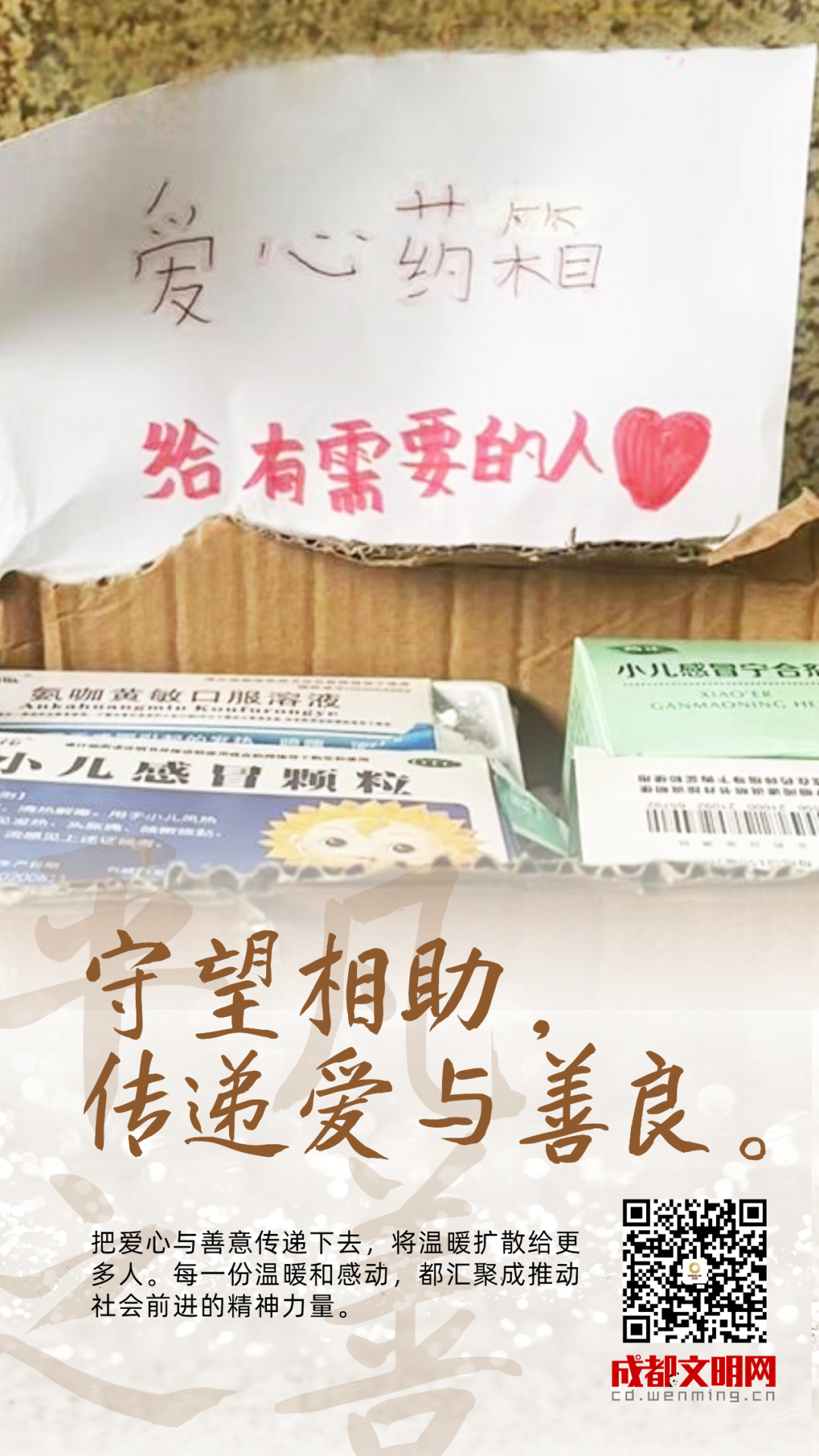 疫情之初,成都人通过“口罩帮帮团”分享富余口罩,为有需要的人解燃眉之急;而今,有业主通过“爱心药箱”分享剩余药品帮助邻里共渡难关。