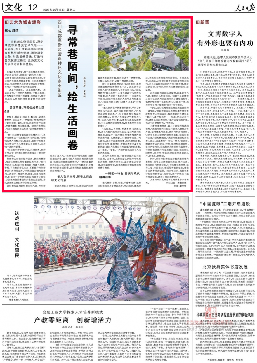 《人民日报》(2023年02月15日 第12版),刊发报道《寻常巷陌间,绘生活画卷》,展示成都以城市有机更新为契机,激发城市活力,让文明城市更有颜值。