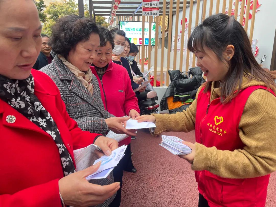 志愿者在辖区内街道、小区等人口密集的点位发放宣传资料,并向居民介绍了垃圾分类速分法、垃圾的正确投放、垃圾袋的使用以及日常生活中的分类窍门。