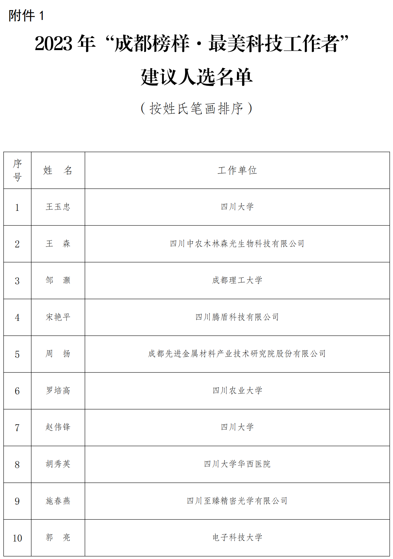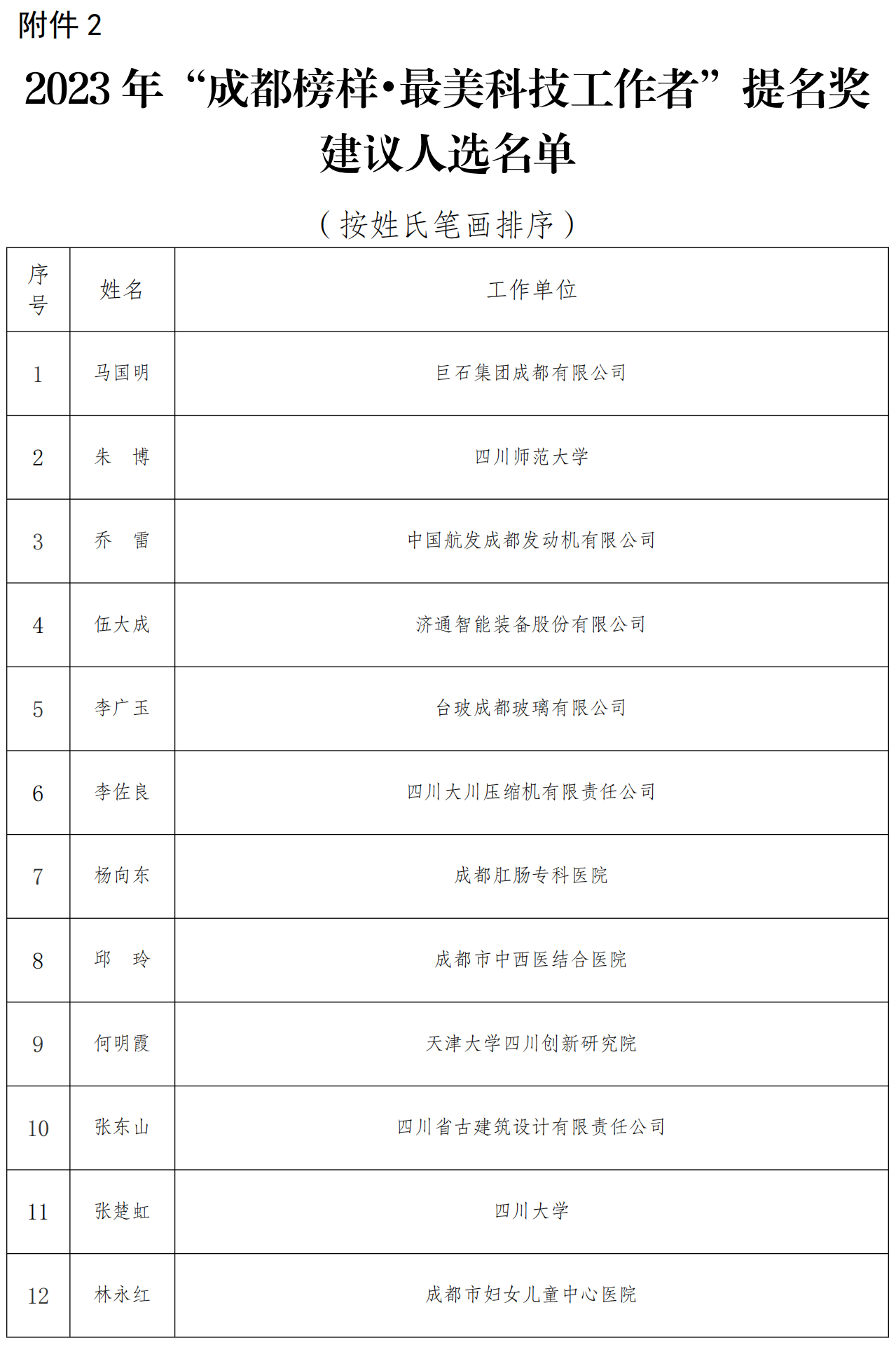 2.2023年“成都榜样·最美科技工作者”提名奖建议人选名单
