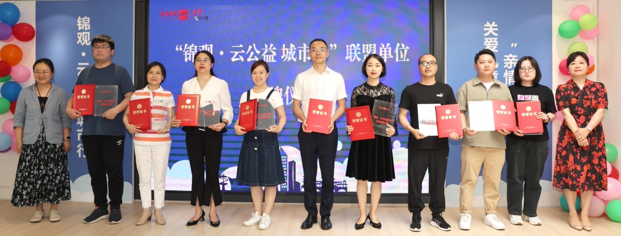 活动当天,“锦观·云公益 城市行”首批联盟单位也正式产生,这其中既有成都市未成年人救助保护中心、成都市妇女儿童中心医院、锦江区心雨青少年社会工作服务中心等爱心机构,也有各类爱心企业,现场,联盟单位代表发出倡议,将积极参与活动。下一步,联盟单位将充分发挥合力,针对各自擅长的领域共同参与和推进更多公益项目落地,同时还将有更多机构和企业陆续加入联盟之中。