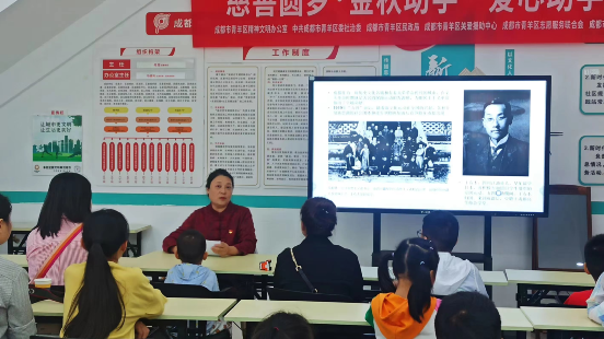 一幅幅反映历史的珍贵照片,一段段震撼人心的英雄事迹深深地感染着每一位到场的小朋友。青羊区新时代文明实践中心邀请西御河街道老党员贝玉英老师讲述了四川最早传播马克思主义的先驱者、革命群众运动的宣传者和组织者、四川地区中国共产党和中国社会主义青年团组织的主要创始者之一王右木英雄的事迹。