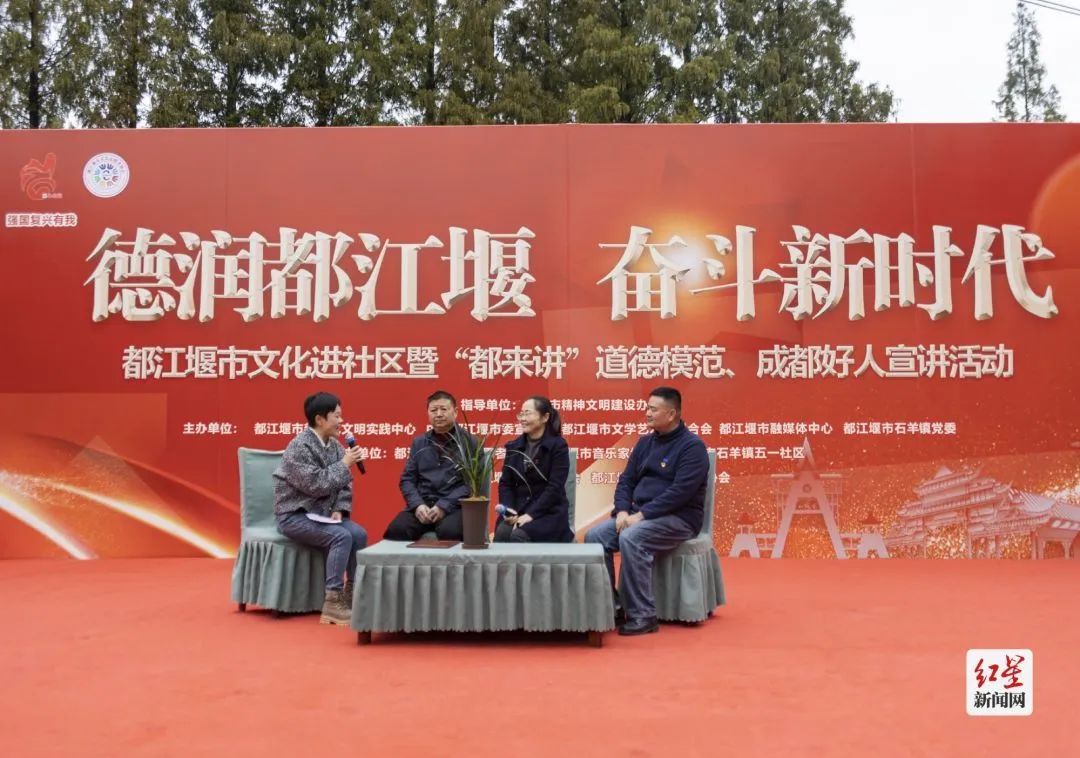 11月15日上午,由成都市精神文明建设办公室指导,都江堰市新时代文明实践中心、中共都江堰市委宣传部、都江堰市文学艺术界联合会、都江堰市融媒体中心、都江堰市石羊镇党委主办的“德润都江堰 奋斗新时代”——都江堰市manbetx安卓手机 进社区暨“都来讲”道德模范、成都好人宣讲活动在都江堰市石羊镇五一社区举行。