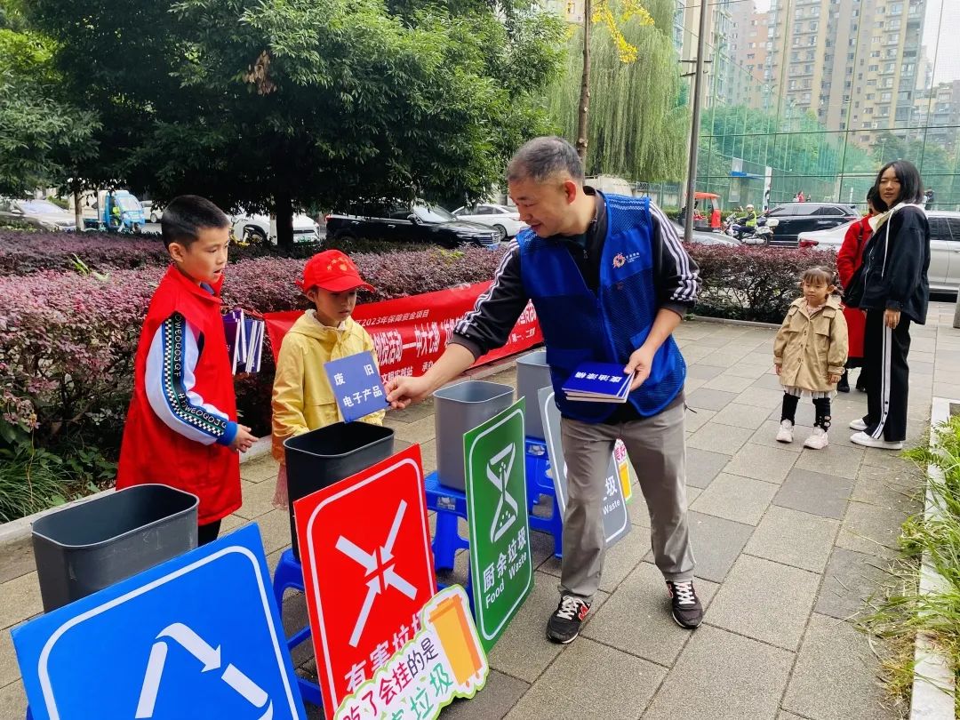 活动现场还设置了有害垃圾科普区,志愿者们拿着宣传册,向居民耐心科普垃圾分类小知识。一旁的“有害垃圾展示架”上,摆放着日常生活中常见的有害垃圾,让居民能更加直观地了解有害垃圾的种类。