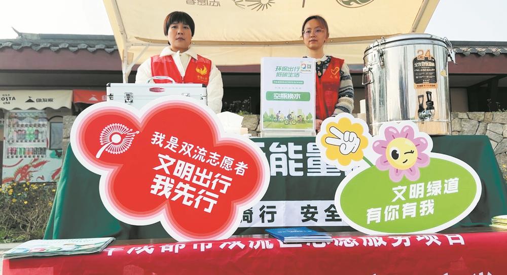 夏季配备解暑药、冰水,冬季准备姜汤、热茶……在悦动彩林段志愿者服务驿站,记者看到,药品急救箱、骑行工具包、水源补给等物资齐备。志愿服务驿站不仅为市民游客提供休息区域和物资补充,也常态化开展文明宣传、咨询引导。