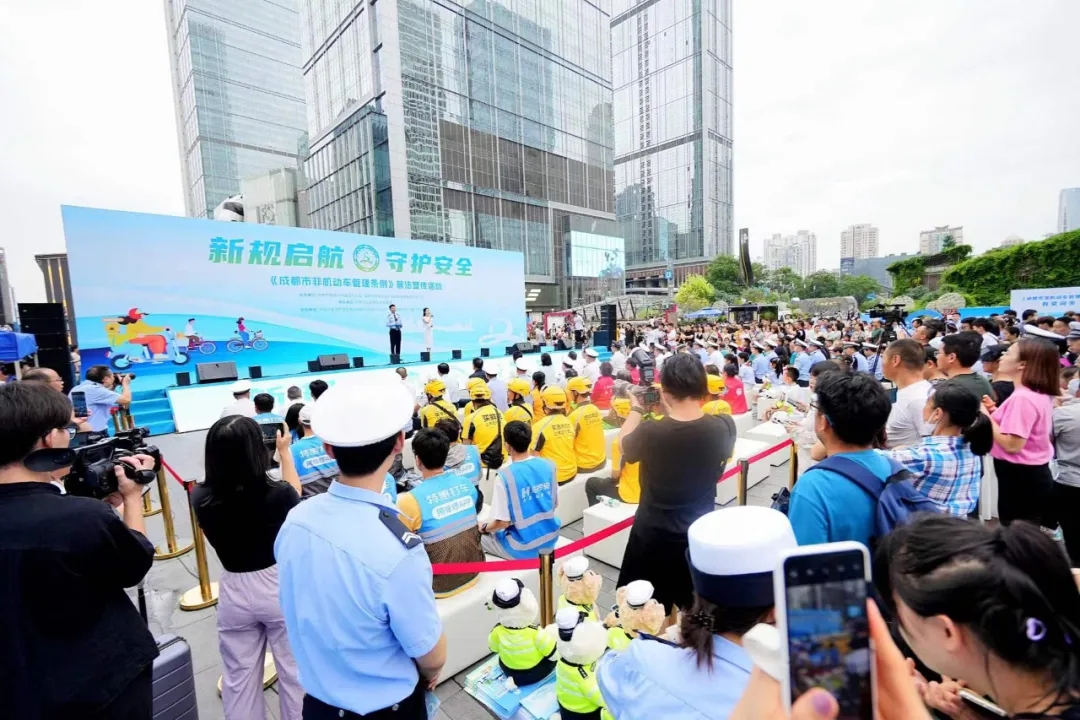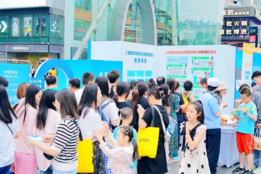 6月1日上午,由成都市精神文明建设办公室、成都市道路交通安全综合治理委员会办公室主办的“新规启航 守护平安”——《成都市非机动车管理条例》普法宣传活动启动仪式在锦江区春熙路中心广场举行。本次活动旨在引导全市各级各部门和广大市民主动学法遵法守法,提升全民交通安全意识和法治意识,共同创建安全、有序、文明、和谐的道路交通环境。