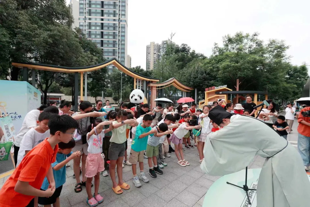 当天,由成都市精神文明建设办公室主办的“到成都街头走一走·发现身边文明”点赞文明践行者系列活动围绕文明礼仪主题,联动天府艺术公园、天府人文艺术图书馆和花照壁社区,开展以文明礼仪知识问答、互动体验等为主要内容的宣传倡导活动,吸引不少大朋友小朋友参与其中,共践文明礼仪。