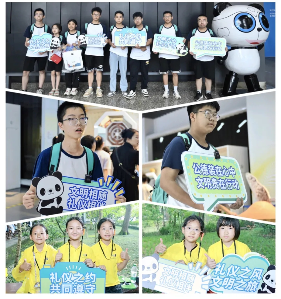 在杜甫草堂,来自凉山的小游客说,“不能打断讲解员,要认真倾听。”“不能大声喧哗,影响他人。”“在禁止拍照的地方不能拍照。”研学团的导游表示,在研学的车上、排队时,她都会跟大家强调排队、观展的文明礼仪,不影响他人,不打闹,引导大家文明观展、文明研学。为小游客们和导游的文明行为点赞,记者为他们送上了一份文明伴手礼。
