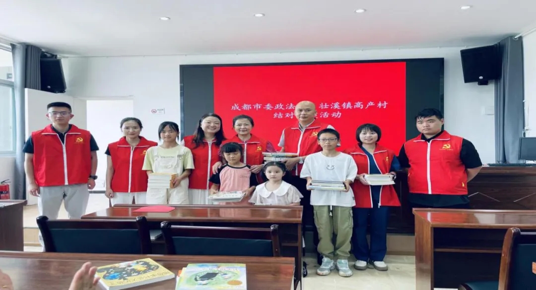 结合困境儿童结对帮扶工作,市委政法委组织专家代表为东部新区壮溪镇高产村村民和留守儿童开展健康义诊和心理辅导活动,并送上书籍、文具等慰问物资。