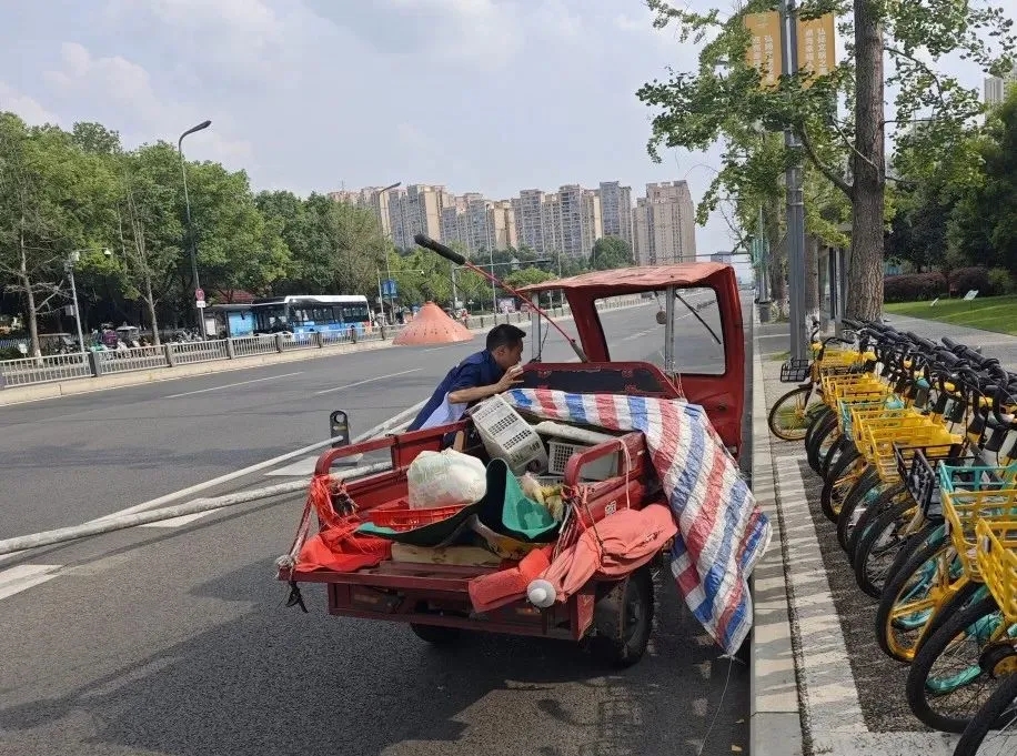 将三轮车推到路边