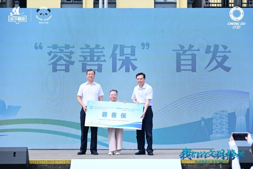 活动现场,成都市道德模范专属保险“蓉善保”正式发布,这是成都市礼遇帮扶道德模范的又一创新举措。成都市委宣传部(市文明办)将从友善公益基金拨款,联合爱心企业为全市道德模范定制专属保险,包含“意外险”“重疾险”以及“免费体检”等。成都市乐于助人道德模范杨秀梅代表道德模范领取了这一份沉甸甸的“暖心险”,她表示这份礼物非常实用,解决了后顾之忧,是一份实实在在的保障。