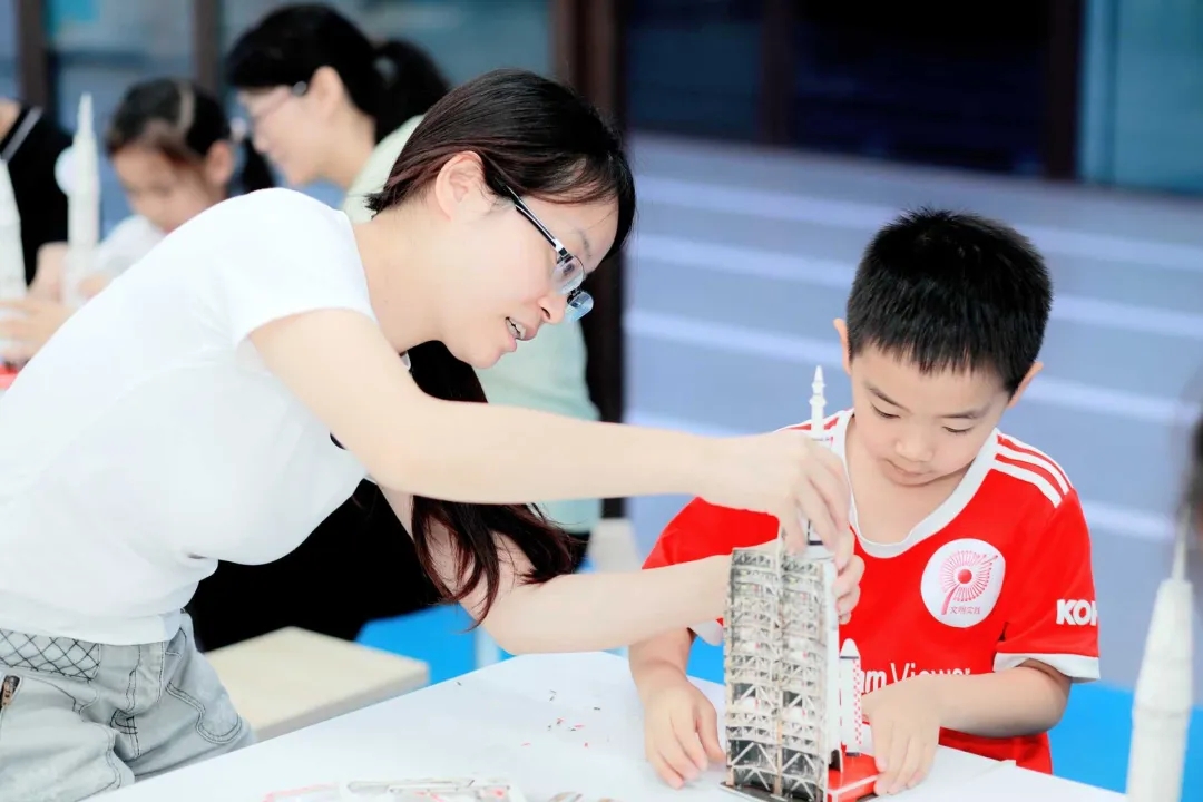在航天科普实践中,青少年们化身火箭工程师动手制作航天模型,通过自主探索和互动体验,切身体会航天工程技术的精密以及航天科学技术力量,增强了青少年科技自信与民族自豪感。