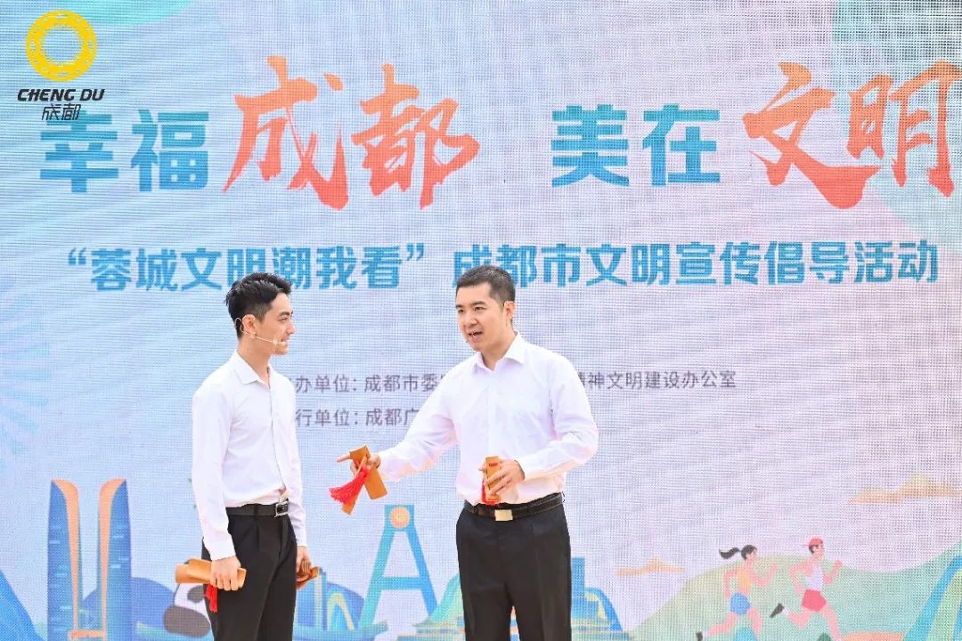活动通过丰富多彩、生动有趣的文艺表演和互动问答形式,传播主流价值,弘扬正风美德,倡树文明新风。活动现场,第八届全国道德模范提名奖获得者董贵生与成都广电名嘴、文艺工作者共同组建“文明倡导人”队伍,为市民游客带来了精彩的宣传倡导表演。文明交通、环境卫生、文明养犬、文明观赛、文明旅游等文明行为倡导贯穿活动始终。