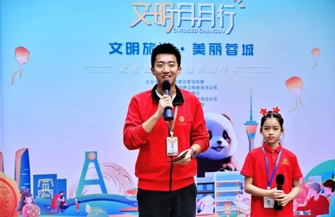 10月1日上午,由中共成都市委宣传部、成都市精神文明建设办公室主办,成都市广播电视台,青羊区精神文明建设办公室、成都金沙遗址博物馆联合承办的“文明月月行——文明旅游·美丽蓉城”文明倡导活动在成都金沙遗址博物馆举行,邀请市民一起践行文明旅游,用实际行动守护美丽蓉城。