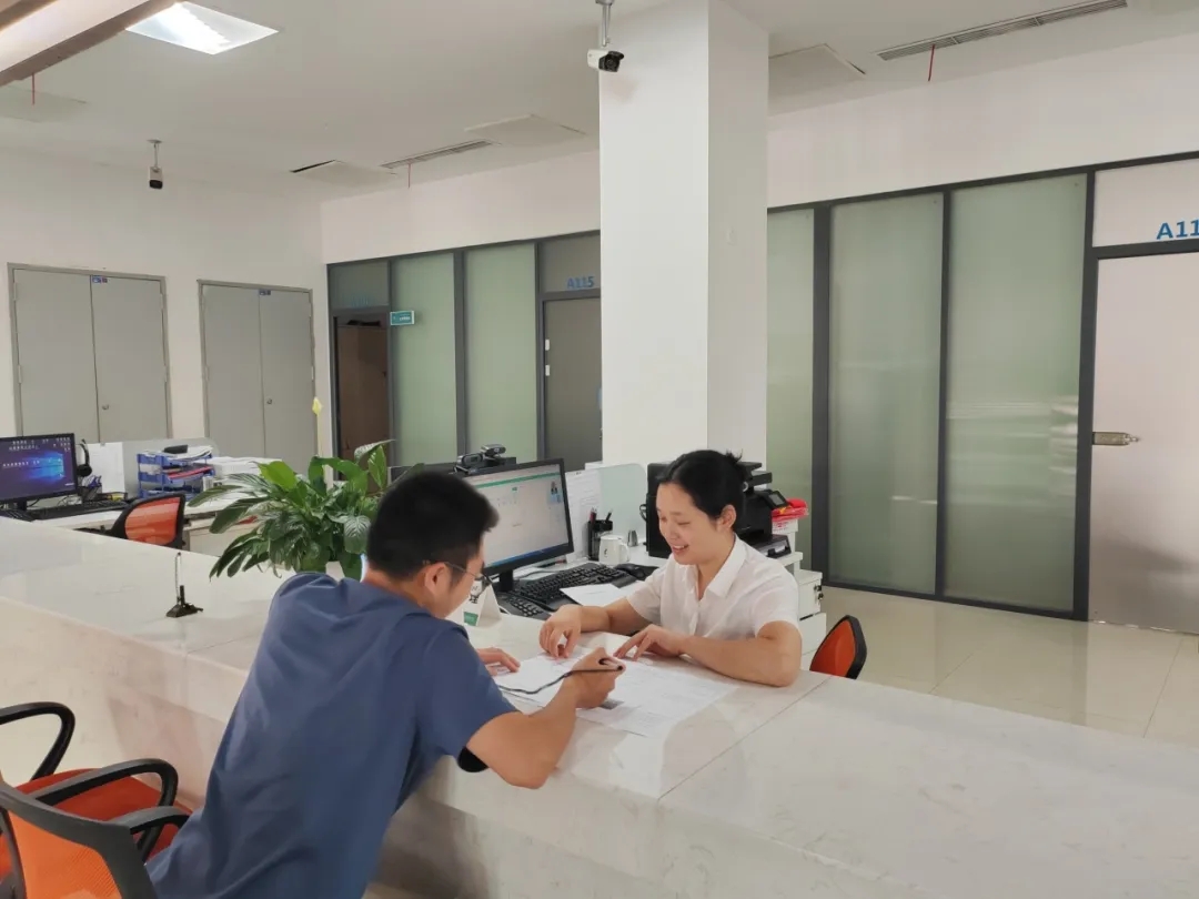 在一次走访的过程中,郑力源了解到一家企业正为股权转让问题发愁。她一回到政务服务中心立即到相关窗口了解办理流程和所需资料,紧接着通过电话沟通与线上确认等方式,在一天之内帮助企业完成了业务办理。