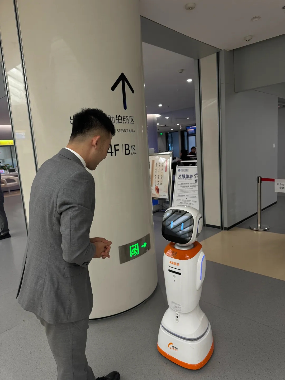 王梓宸所在的团队总共25人,每人轮流负责政务服务中心各个区域的现场管理。最近,王梓宸负责公安出入境管理业务办理窗口。
