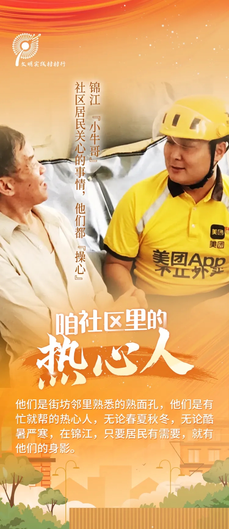 他们是街坊邻里熟悉的熟面孔,他们是有忙就帮的热心人,无论春夏秋冬,无论酷暑严寒,在锦江,“小牛哥·先锋车手”只要是社区居民关心的事情,他们都“操心”。