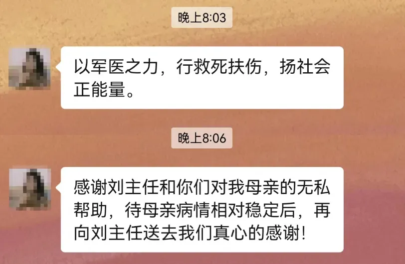 小编从患者家属夏女士处了解到,患者刘阿姨已从广安市人民医院回到家中,目前病情相对平稳。她告诉小编:“母亲晕倒的那一刻真的很无助,心里很慌,看到医生来的那一刻,就像看到了希望,真心感谢列车员和医生们!”她说等母亲病情完全稳定后想当面感谢医务人员和列车员们。而面对患者家属的感谢,刘德芳表示这只是军医应尽的职责。