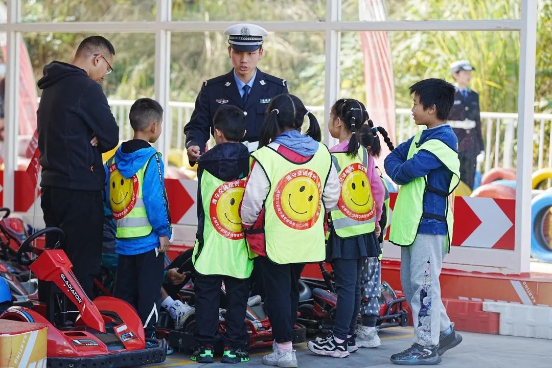 “红灯停、绿灯行,斑马线处要减速,遇到路人要停车……”在交通安全体验环节,小朋友们戴上手套、头盔,系上了安全带,开上卡丁车,沉浸式体验文明交通安全出行。