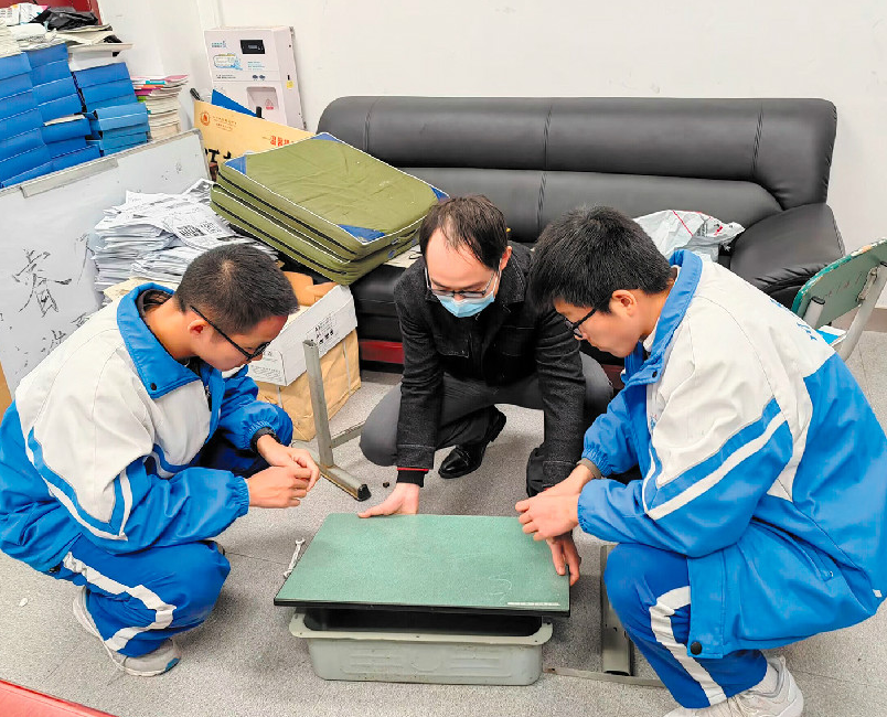 问题激发灵感。3月,在川大附中的思维节上,高二五班的几个同学把上述问题正式放到了校长和专家面前:真正理想的课桌椅应该是什么样的?在广泛的市场调查后,同学们通过调研、手作、建模等几大步骤,把这些由课桌带来的烦恼和不文明影响当成了课题来研究。