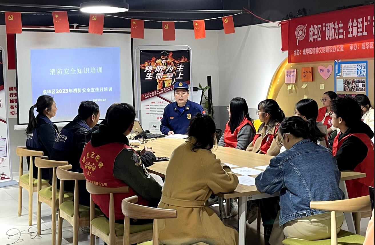为进一步普及消防安全知识,提升市民消防安全意识和自防自救能力,围绕“预防为主,生命至上”的主题,11月消防宣传月期间,在成华区新时代文明实践中心组织指导下,各新时代文明实践阵地开展了“小手拉大手”“行业大宣传”“消防微阵地”“消防微活动”等内容丰富、形式多样的文明实践主题系列活动,累计开展活动近200场,近1500名志愿者参与,培训网格员2000余人次,安全隐患排查30000余户,发放宣传资料50000余份。