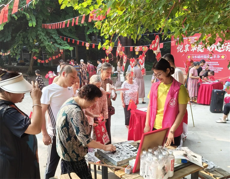 9月27日,双水碾街道双水碾村举办了“悦享华诞,妙趣游园”国庆嘉年华活动。活动现场,非遗拓印、漆扇DIY等传统manbetx安卓手机 体验区,让居民沉浸其中,深切感受到了传统manbetx安卓手机 的独特魅力。紧接着的近代史竞猜环节,居民以抢答、问答的形式参与,活动结束后,大家深刻体会到今日幸福生活的珍贵与不易,纷纷表达了对党的感激之情。活动尾声,居民在国庆祝福打卡墙上留下了对祖国的祝福和对未来的期许,为这场嘉年华活动画上了圆满的句号。