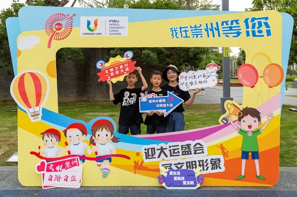 “家庭文明、城市更文明,家庭和谐、城市更和谐,让我们为圆满举办大运会贡献一份小家力量,让文明之花在崇州纵情绽放、结出累累硕果……”活动现场,家庭代表现场宣读了文明观赏倡议书。“旅游中,游客乱扔垃圾、随地吐痰是不文明行为,我们应该及时制止,共同保护环境卫生”“我看到动物园有人向动物投喂食物,会让动物生病,这非常不应该”……小朋友们指出身边不文明行为现象,并提出自己的见解。活动现场还设置了“文明游大运”家庭文明互动小游戏。