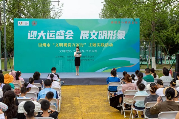 为迎接成都第31届世界大学生夏季运动会的到来,6月11日,崇州市精神文明建设办公室、崇州市新时代文明实践中心在新时代文明实践公园举行“迎大运盛会 展文明形象——文明观赏万家行”主题实践活动。