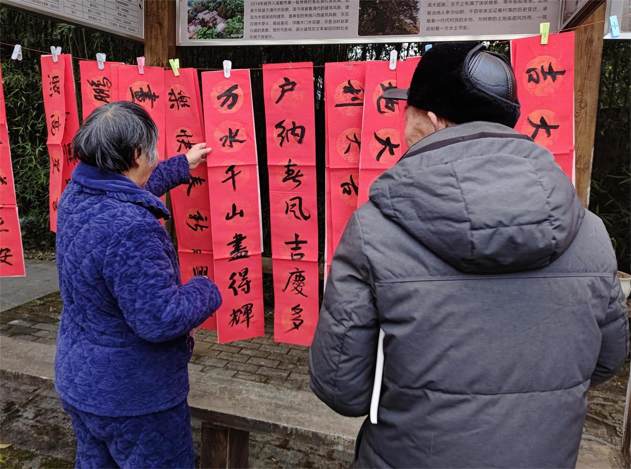 执笔绘红笺,墨香迎新年。成都惠民职工画院书法老师现场展纸伏案、挥毫泼墨,撰春联、写“福”字,一笔一画遒劲有力,一字一句增添吉祥瑞气,“龙腾四海开胜景 春满九州展宏图”“龙年吉祥迎新岁 春回大地万象新”“财伴春风入宅门 福随瑞气来庭院”……饱含着挥别玉兔、喜迎腾龙、辞旧迎新的美好祝愿。活动现场气氛活跃,洋溢着浓郁的年节氛围。