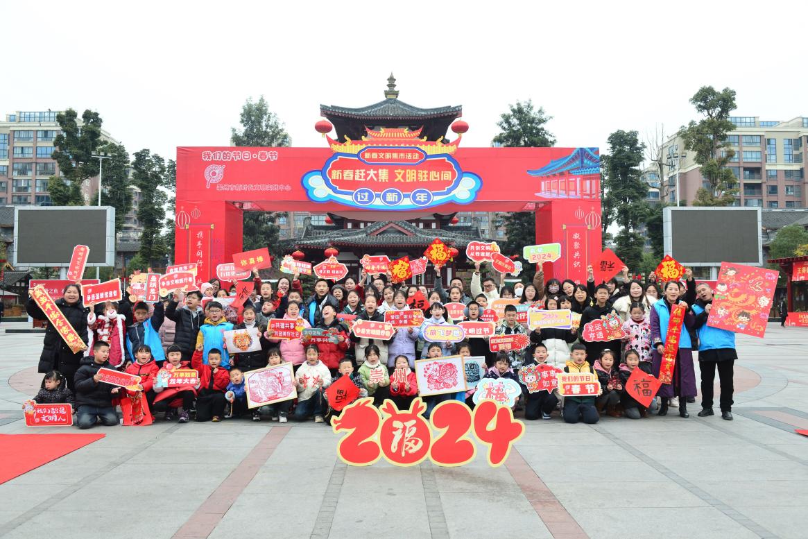 “新春文明我来说”快板儿、赏年画、川剧变脸、泥塑、竹编、糖画体验……春节将至,年味渐浓。2月6日,在崇州市相府广场,由崇州市新时代文明实践中心及市志愿服务总队联合开展的新春文明集市热闹开张。