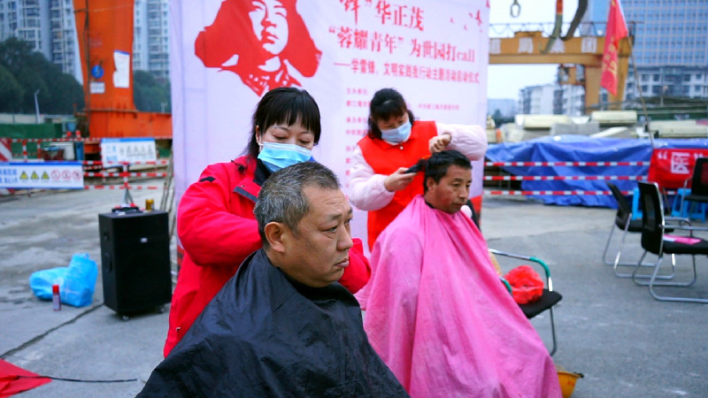“学习雷锋好榜样,忠于革命忠于党......”活动开始前,中铁隧道局都四山地轨道项目1标段工友、志愿者和市民代表们合唱《学习雷锋好榜样》,在激昂的音乐中感受雷锋的赤子情怀,重温雷锋精神中的奉献精神。