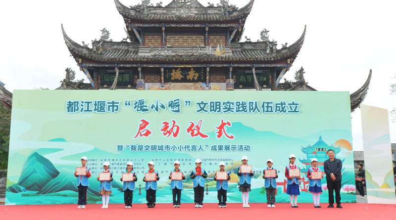 活动现场,成都市文明办相关领导宣布都江堰市“堰小明”文明实践总队成立,成都市公安局交通管理局相关领导为总队授旗。都江堰市委宣传部(市文明办)、市公安局、市教育局携手四川省都江堰中学、都江堰外国语实验学校、都江堰市北街小学等15所中小学,成立都江堰市“堰小明”文明实践支队,通过一系列丰富多彩的文明实践活动,带领市民和游客一起参与文明交通,感受这座“三遗之城”的城市温度。