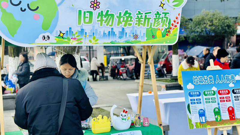 走进活动现场,映入眼帘的是一个个色彩明快的集市主题摊位。宣传展示区内,用废旧物品制作的工艺品,以及降解餐具、可降解包装等绿色生活用品向居民普及绿色生活理念。“这些展品都是社区达人用废品做的,没想到垃圾还能变身艺术品,孩子看了很感兴趣。”带着孩子参观的市民王琦感慨道。