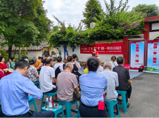 近日,一场反响热烈的宣讲活动在大邑县晋原街道黄土村水碾林盘展开。当天一早,伴随着优美的歌声,“乡音传‘习’语 宣讲‘零’距离”系列活动第三期——“擦亮群众幸福底色”来到了晋原街道黄土村。志愿者们用朴实接地气的宣讲方式,将习近平新时代中国特色社会主义思想送到百姓身边。