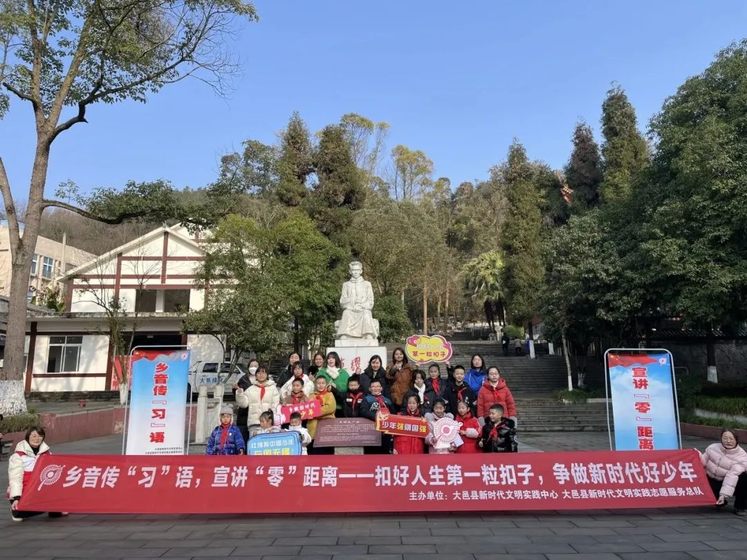 为弘扬爱国主义精神,传承红色基因,引导未成年人“扣好人生第一粒扣子”,为实现中华民族伟大复兴的中国梦努力奋斗。近日,大邑县新时代文明实践中心带领大邑县青少年们在静惠山公园开展了“乡音传‘习’语 宣讲‘零’距离——扣好人生第一粒扣子,争做新时代好少年”系列活动。