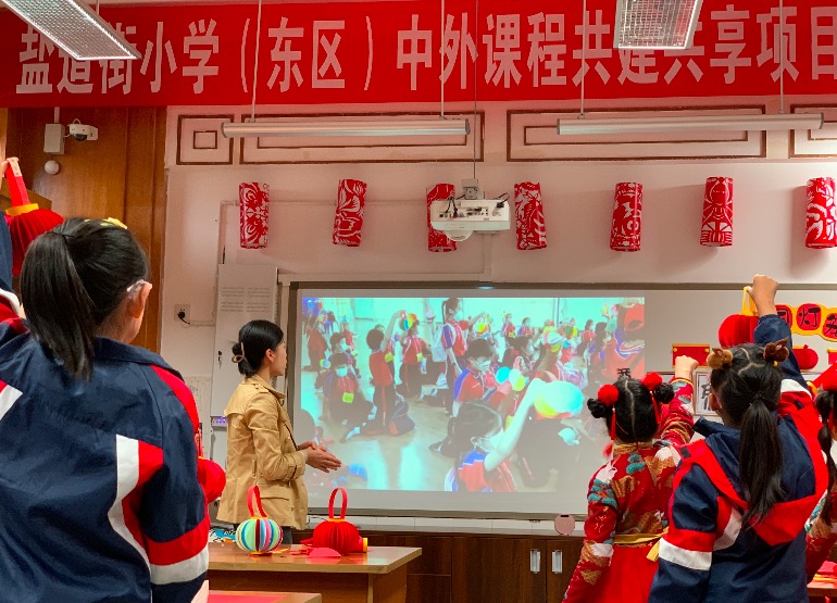 近日,成都市盐道街小学(东区)校部分学生在语文组老师张文艺的带领下,通过网络会议室,连线了泰国蒙福学院小学部师生,同上了一堂《巧手制俏灯 盏盏传心意》的课程活动。课程活动借着小小的灯笼,实现了“中外人文交流课程共建共享”。