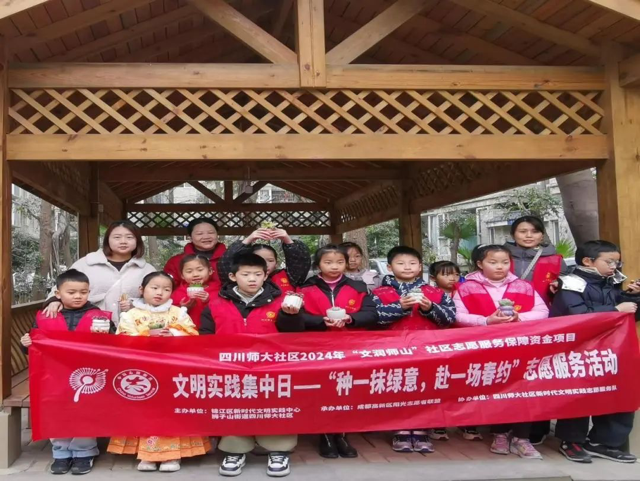 狮子山街道四川师大社区新时代文明实践站举办了“种一抹绿意,赴一场春约”文明实践活动。在集体学习了解习近平生态文明思想后,专业人员指导青少年亲手种下一盆盆生机勃勃的多肉小盆栽,体验种植乐趣的同时,将环境保护的理念一同种在了心底。
