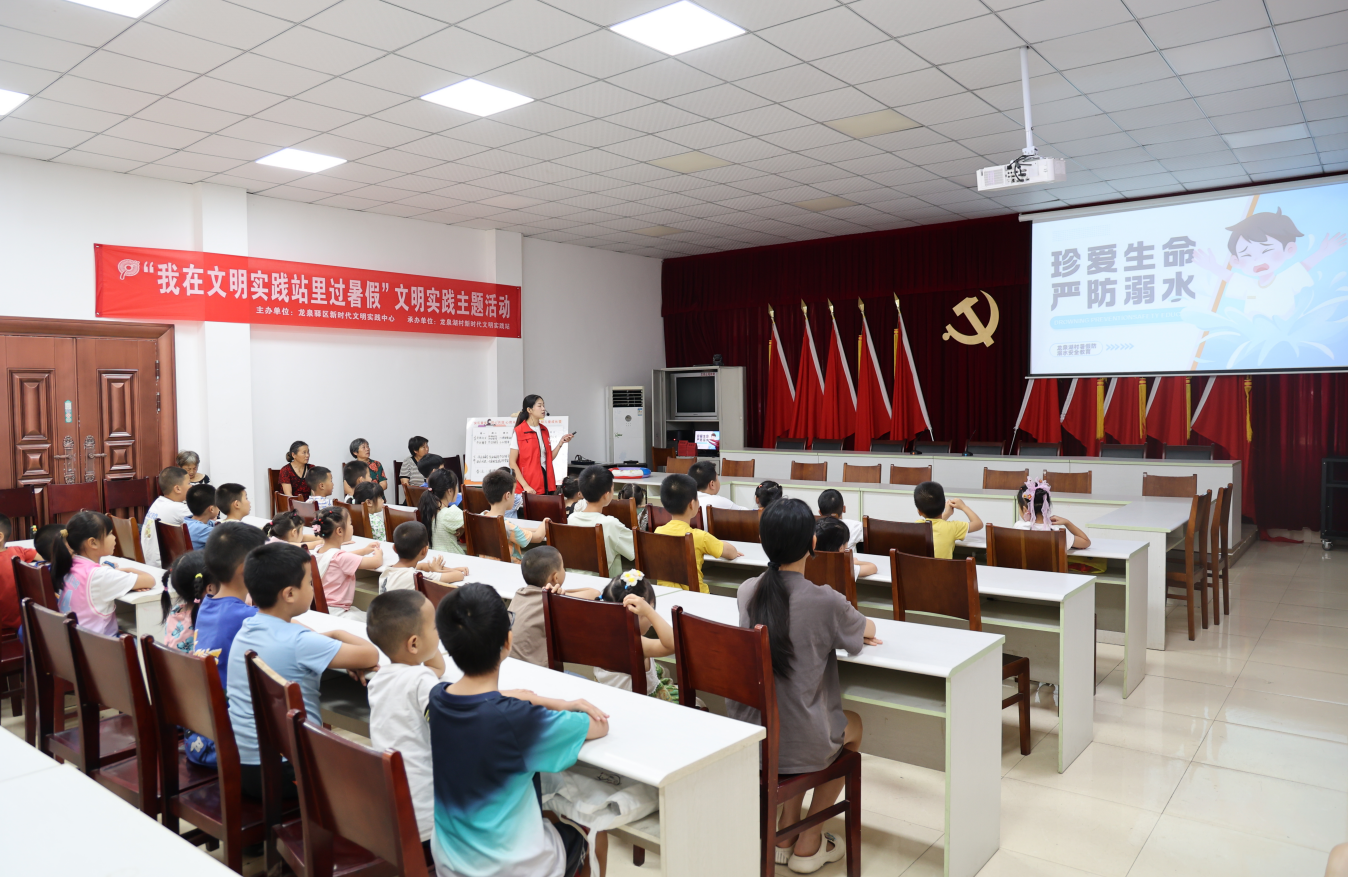 无独有偶,在山泉镇龙泉湖村新时代文明实践站,一场暑期防溺水安全教育课正在进行。课堂上,志愿者结合生动有趣的故事告诉孩子们到陌生水域的危险性,讲解防溺水、自救互救等知识,并进行问答互动,提醒孩子们不能在没有家长的陪同下私自下水游泳,提高孩子们的安全意识。