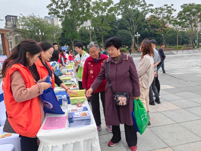 “伯伯,这个是宣传我们每天节约粮食的。”“阿姨,平时要节约用水,水是粮食之本。”广场上,志愿者为居民发放《市民文明手册》等宣传手册、宣传挂图,丰富的内容让居民忍不住翻阅起来。