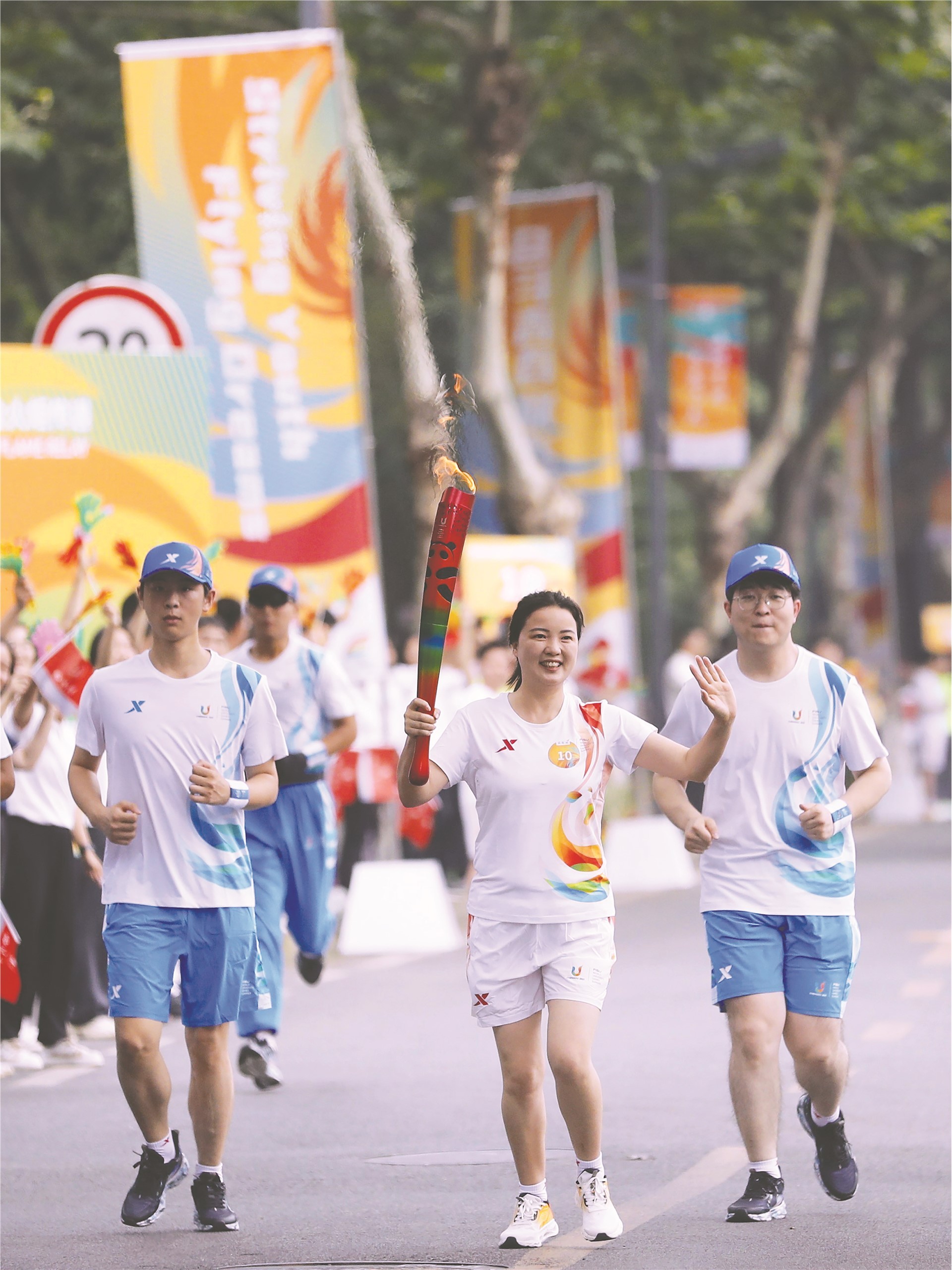 成都第31届世界大学生夏季运动会火炬“蓉火”跨越大半个中国,7月2日,终于回到了成都。来自全国各个领域的火炬手心手相连,接力传递火炬,成都市乡村振兴“明星村”、全国文明村唐昌镇战旗村党委副书记李光菊,成都十佳志愿者、成都市幸福美好生活十大工程首批市民观察员、郫筒街道双柏社区“社区合伙人”周咨余,高级工程师、全国五一劳动奖章得主、四川省劳动模范李准,3名成都郫都人相继担任成都大运会火炬传递(成都站)的火炬手。他们高举燃烧的火炬,以昂扬的姿态、坚定的步伐,圆满完成火炬传递。