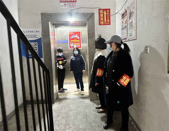 “四栋一单元的,该你们下来做核酸了,请大家不要拥挤,保持3米间隔距离。”负责该楼栋工作的是向胡佳母女,她们是招募信息发送后率先参与报名的志愿者。在轮到一单元做核酸时,向胡佳负责上门通知,母亲则在单元楼门口引导居民排队,母女俩分工协作,配合默契。