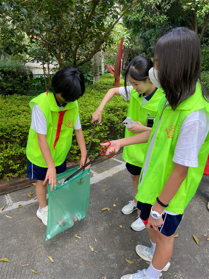 系上红领巾,身穿绿色志愿服,戴上口罩和手套,这些刚从小学升上初中的孩子们自己选择地点、自己成群结队开展疫情防控、环境清理、垃圾分类宣传等形式多样的志愿服务,以及“缅怀革命先烈,传承红色基因”的爱国主义教育活动。他们小小的身影遍布在革命烈士陵园、大岭山公园、水濂山水库、图书馆、生活小区、核酸检测站等城市每个角落,同学们三五成群,或带上父母和兄弟姐妹,或一个人静静地、仔仔细细将社区或公园垃圾清扫干净,或顶着烈日在核酸检测点维持秩序,为东莞防疫贡献一份力量,或来到革命烈士纪念碑前,表达对英烈的崇高敬仰,传承红色基因,汲取奋进力量……